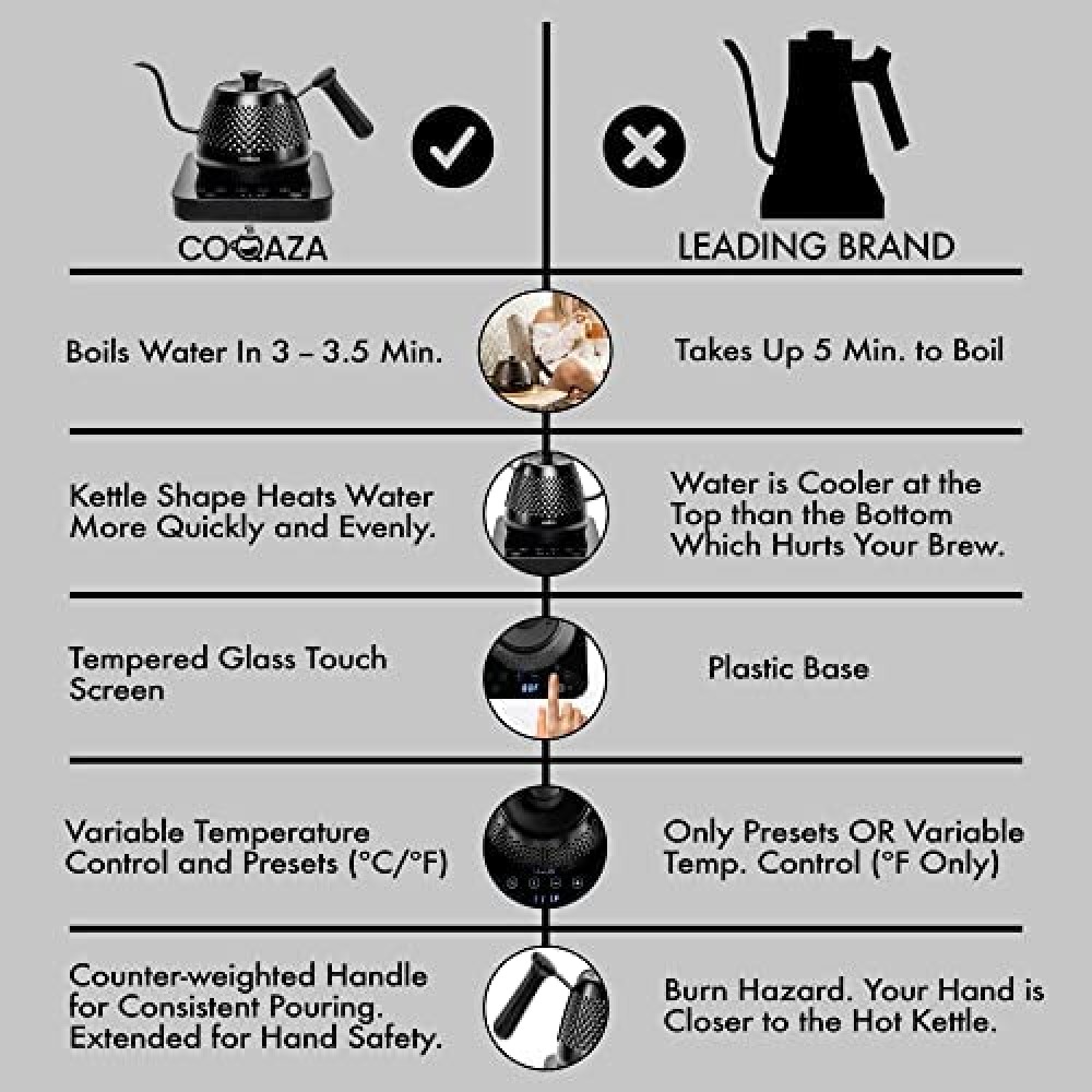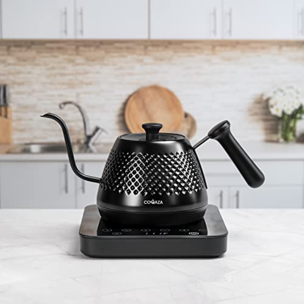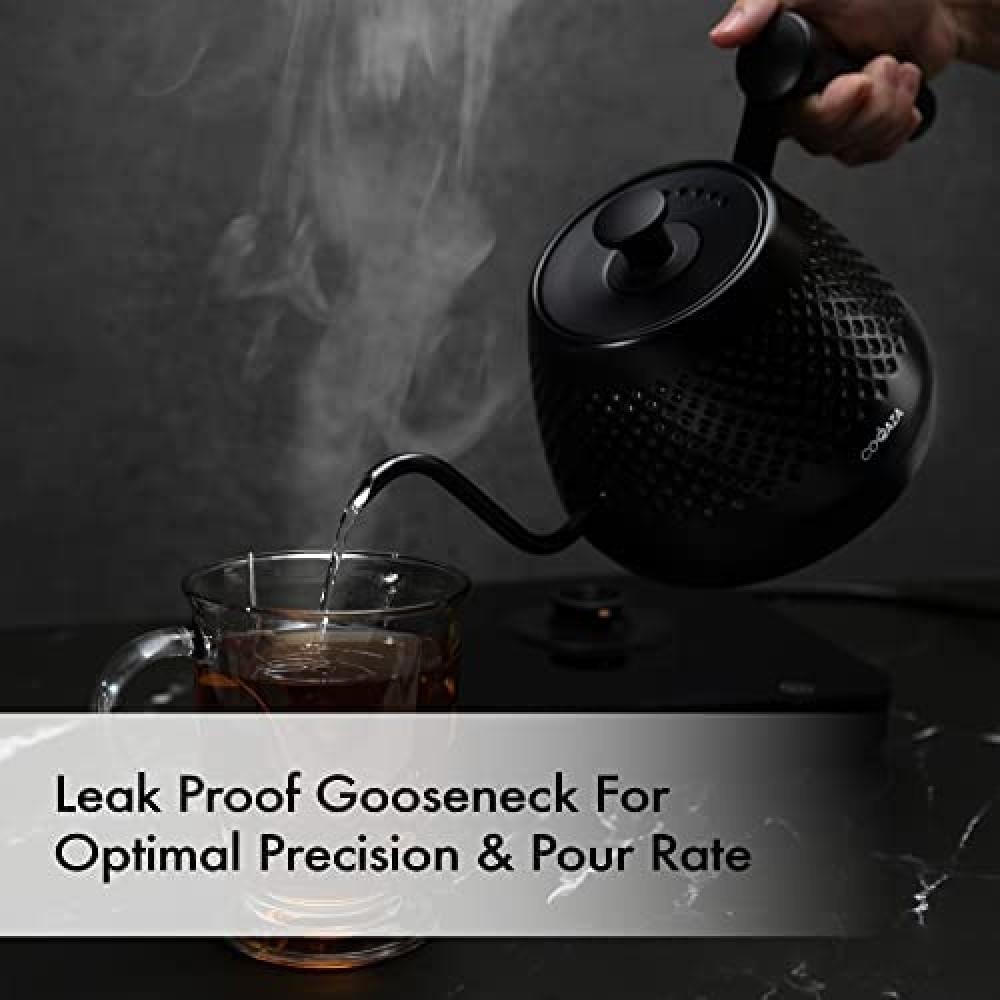 Hervidor eléctrico de cuello de cisne, control de temperatura variable y ajustes preestablecidos, hervidor de agua para café y té, hervidor de agua eléctrico de acero inoxidable, calentamiento rápido, hervidor de té negro, base de vidrio