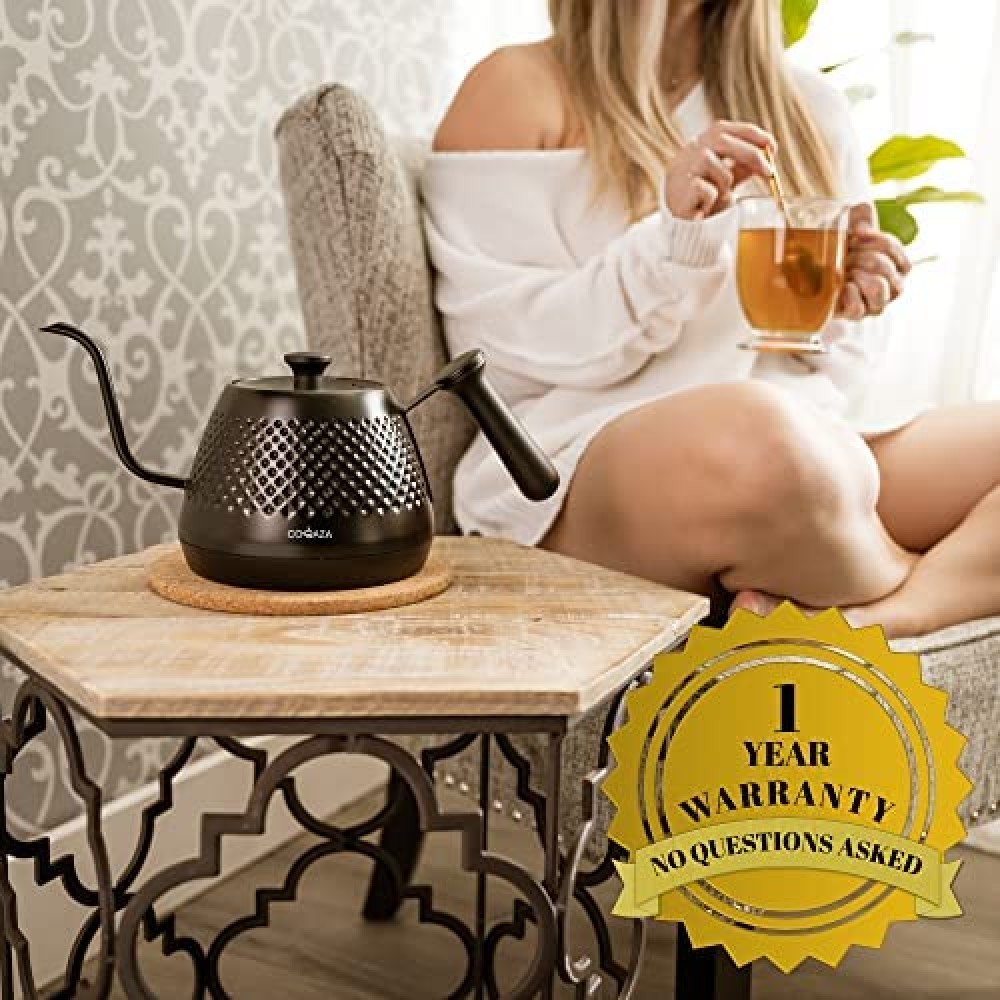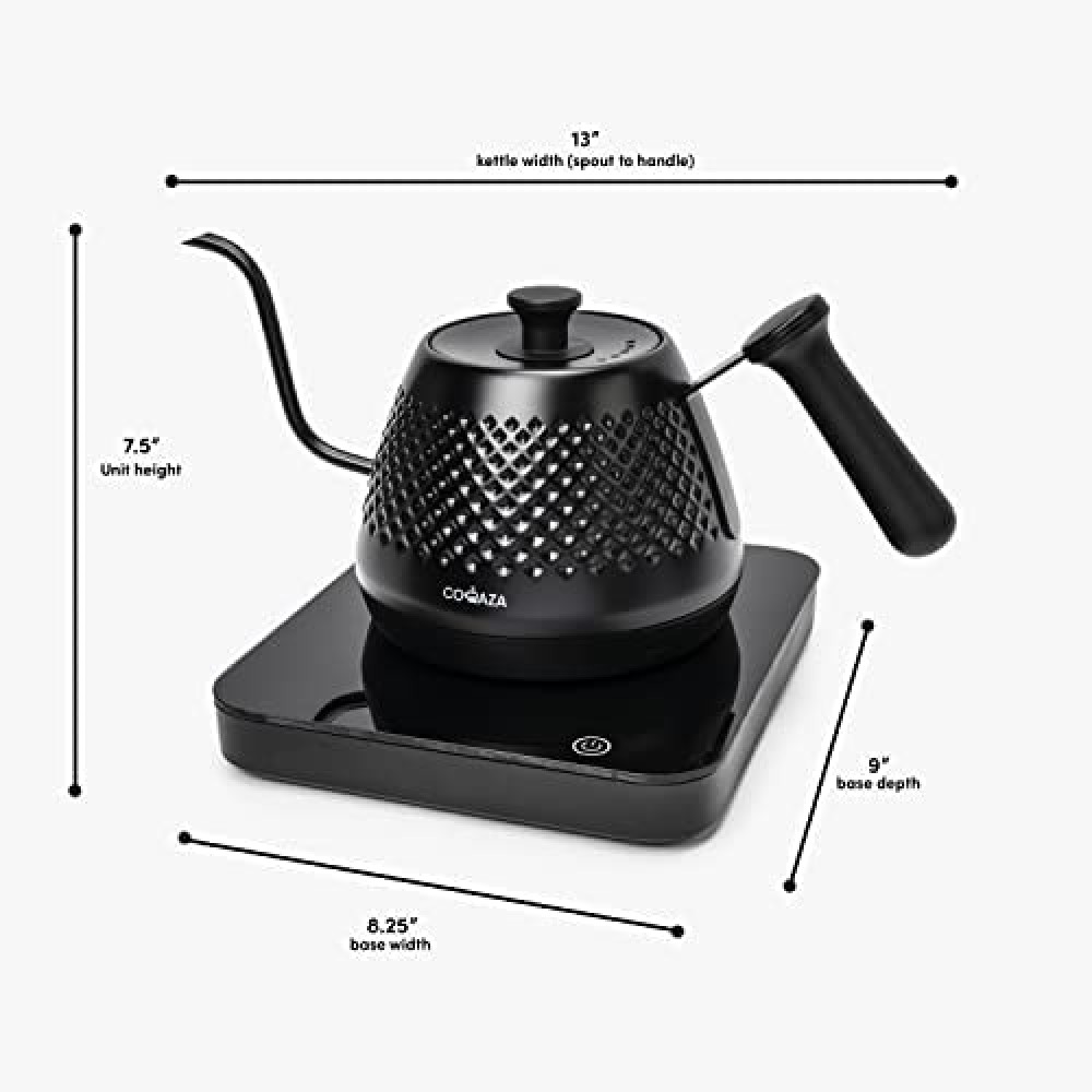 {Control y precisión sobre el café o el té} El proceso de preparación del café se ha descrito como meditativo. La precisión requerida se logra mejor con un hervidor eléctrico para verter el café. Consiga un café rico y equilibrado con control y precisión. Dado que la tetera te ayuda a lograr un control increíble, también es ideal para el té.