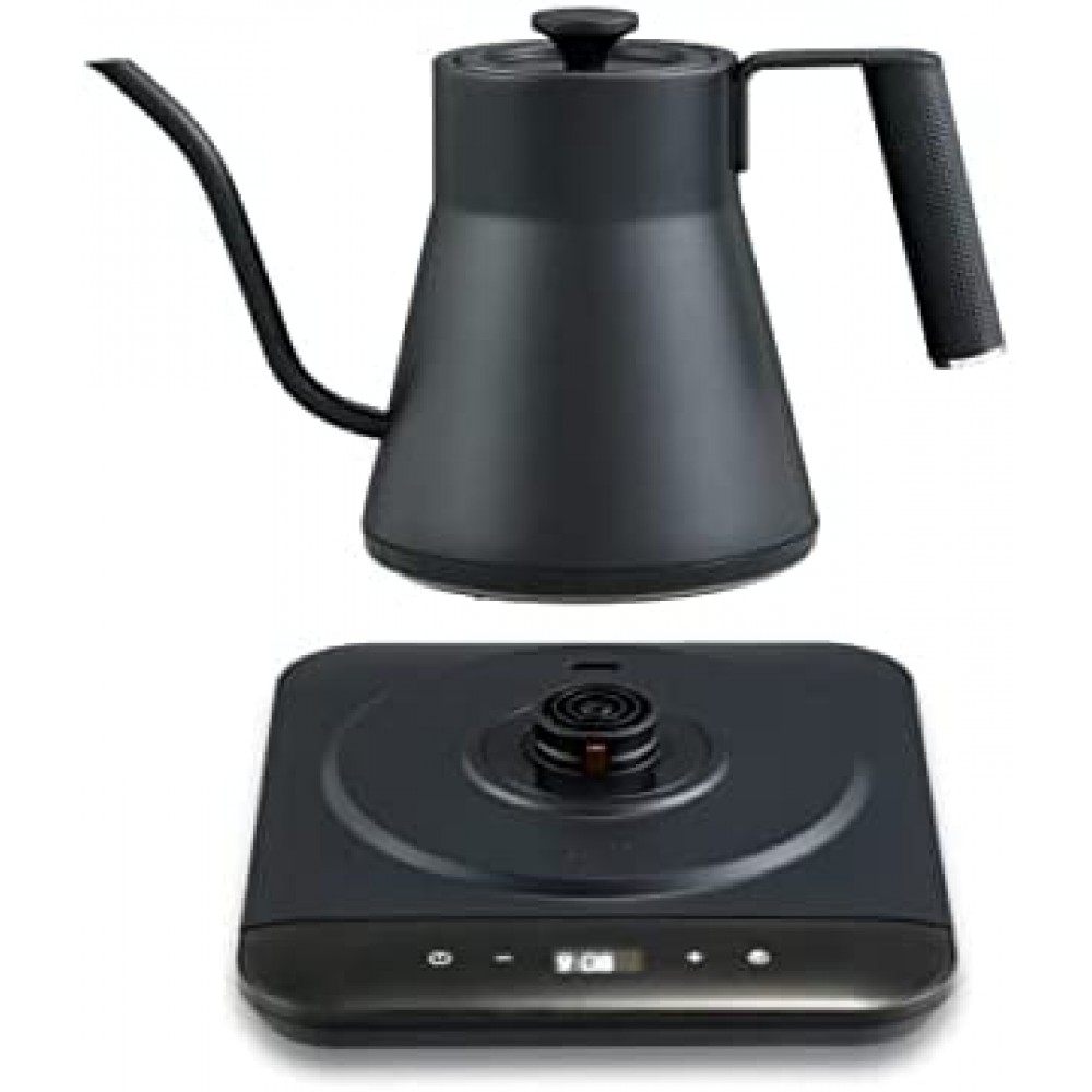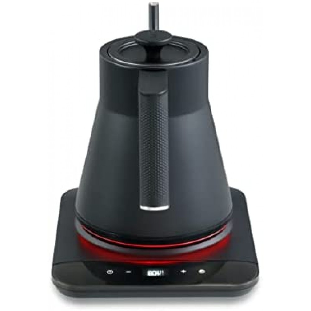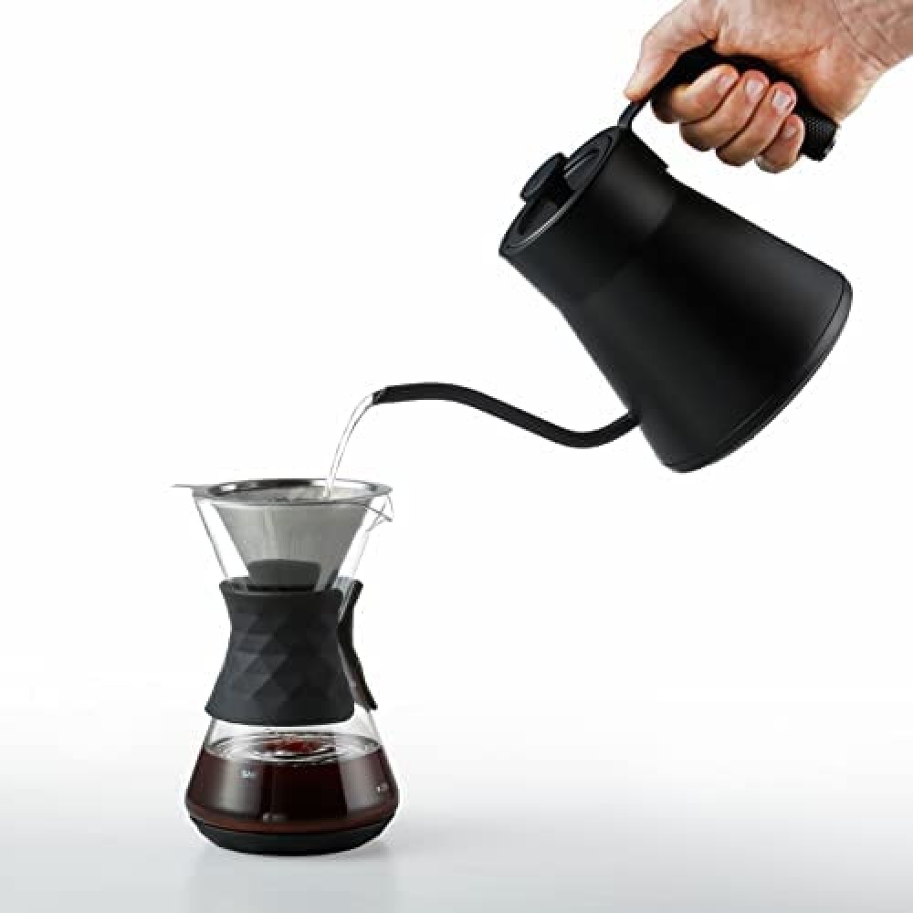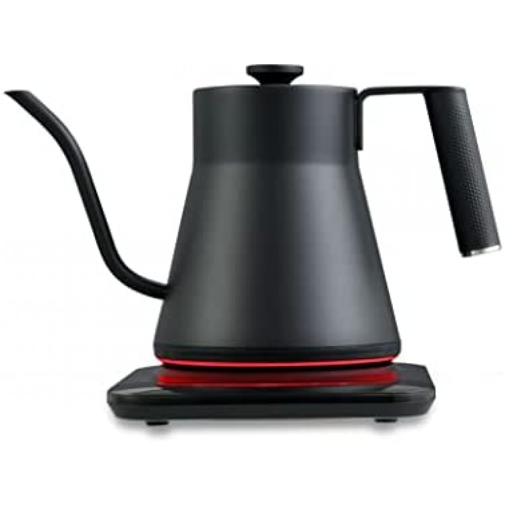 Baristan Hervidor eléctrico de cuello de cisne con control de temperatura preciso, hervidor de café y tetera, acero inoxidable, calentamiento rápido de 1200 W, 1 litro, negro mate