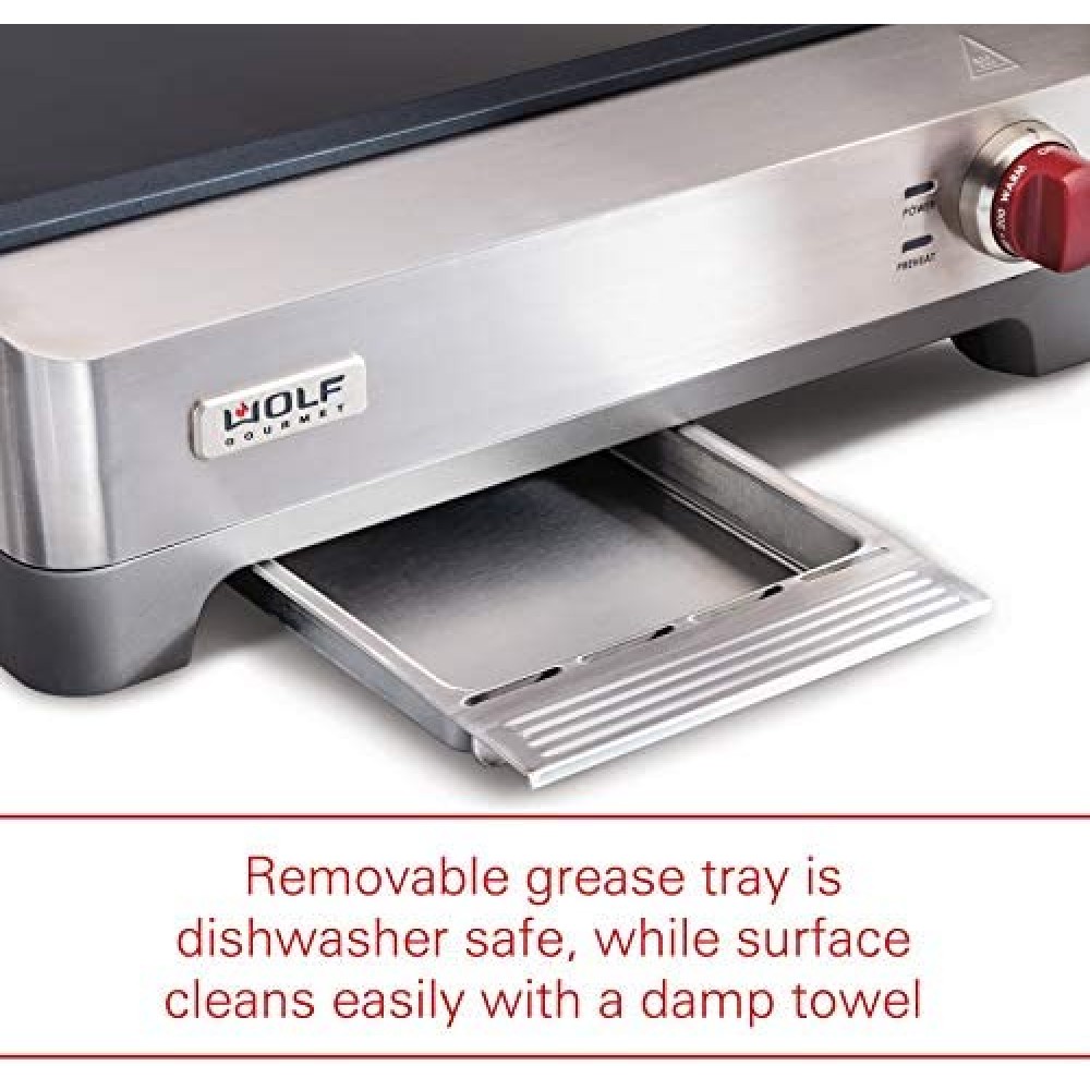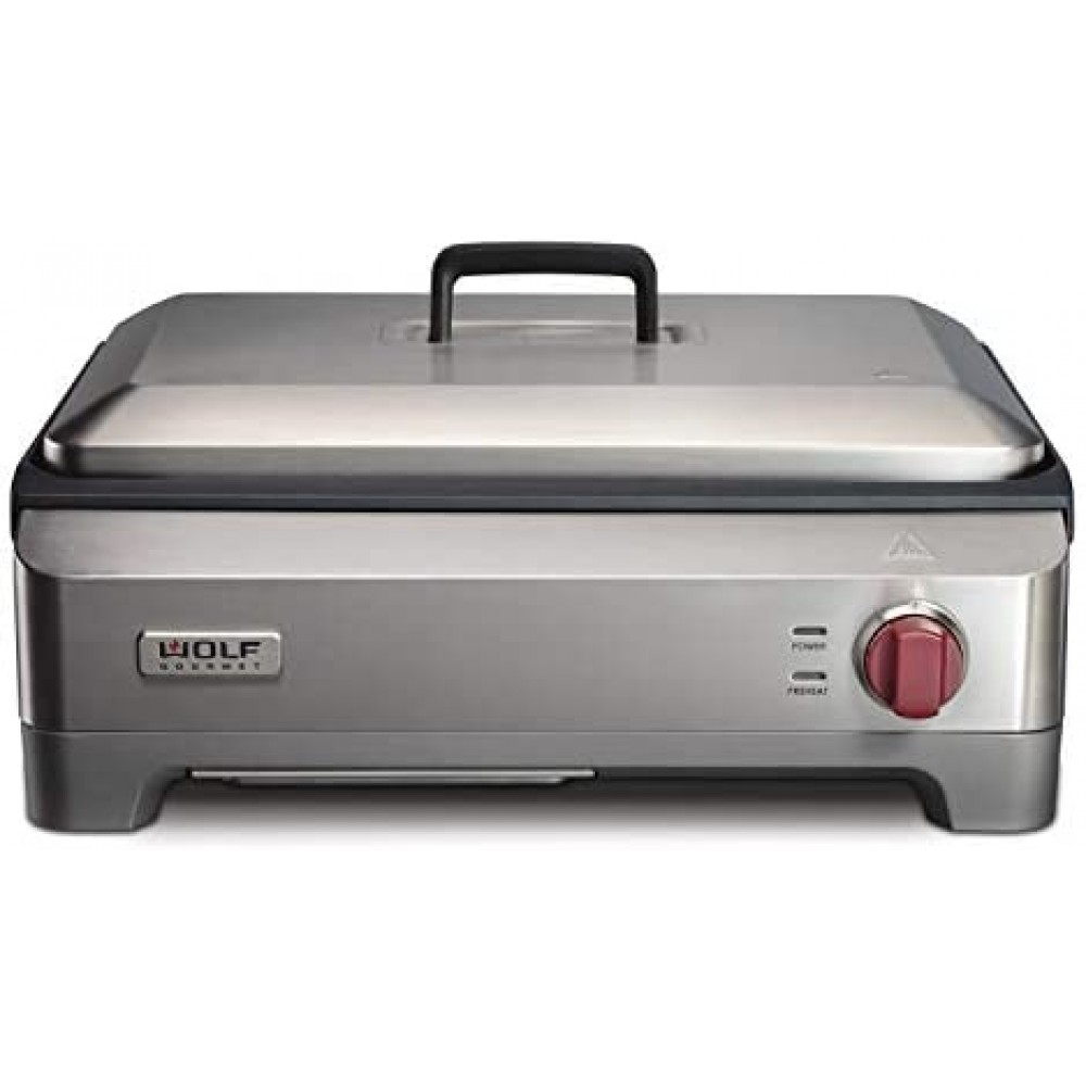 Plancha eléctrica de precisión, parrilla interior, 200 pulgadas cuadradas, revestimiento antiadherente, control de temperatura avanzado, acero inoxidable, perilla roja (WGGR100S)