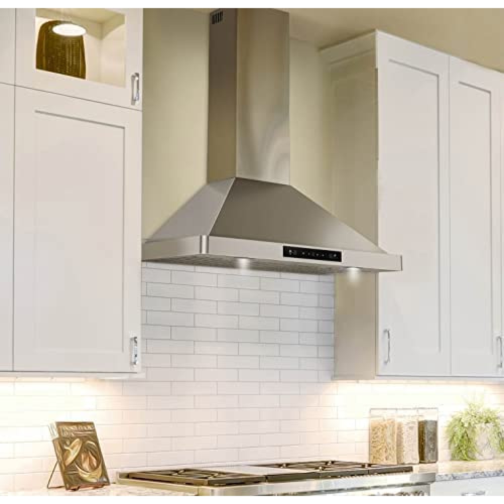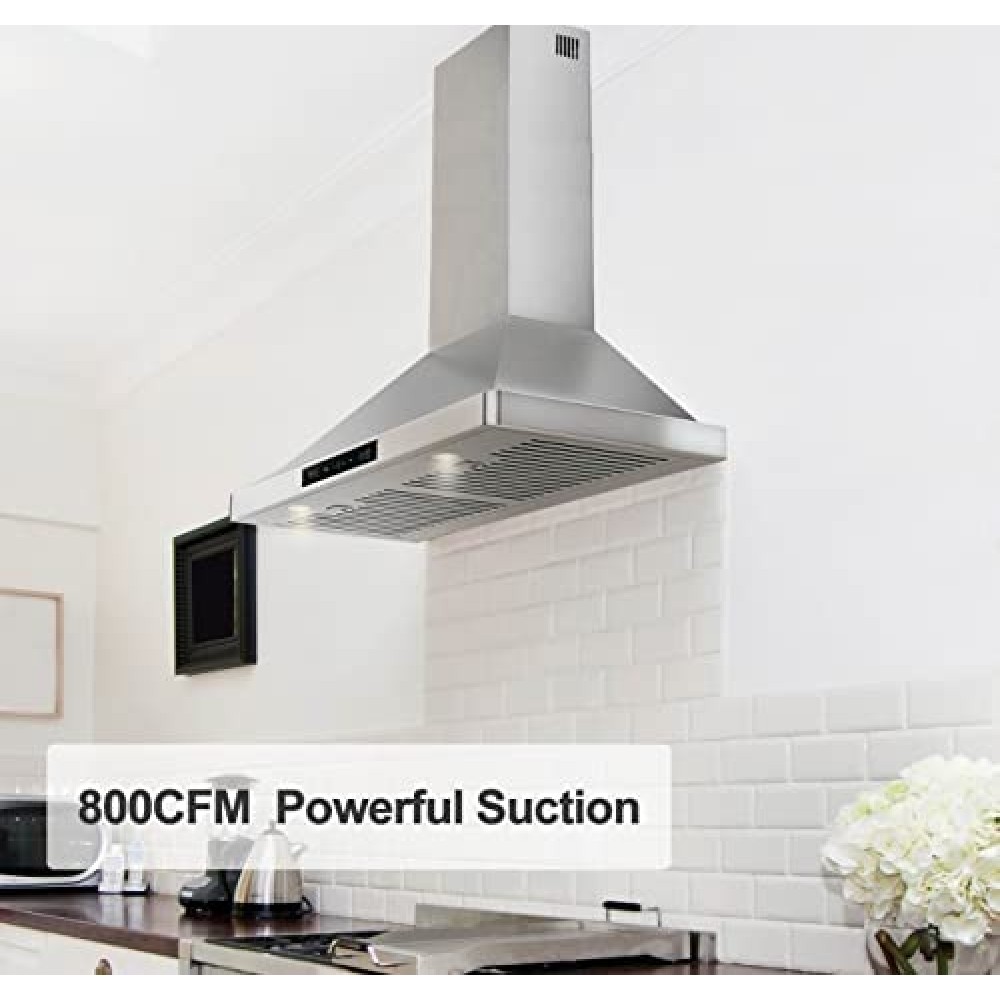 Campana extractora de montaje en pared de 30 pulgadas 800CFM, con motor de CC, campana de ventilación de acero inoxidable con ventilador de escape de 6 velocidades, convertible a con y sin conducto