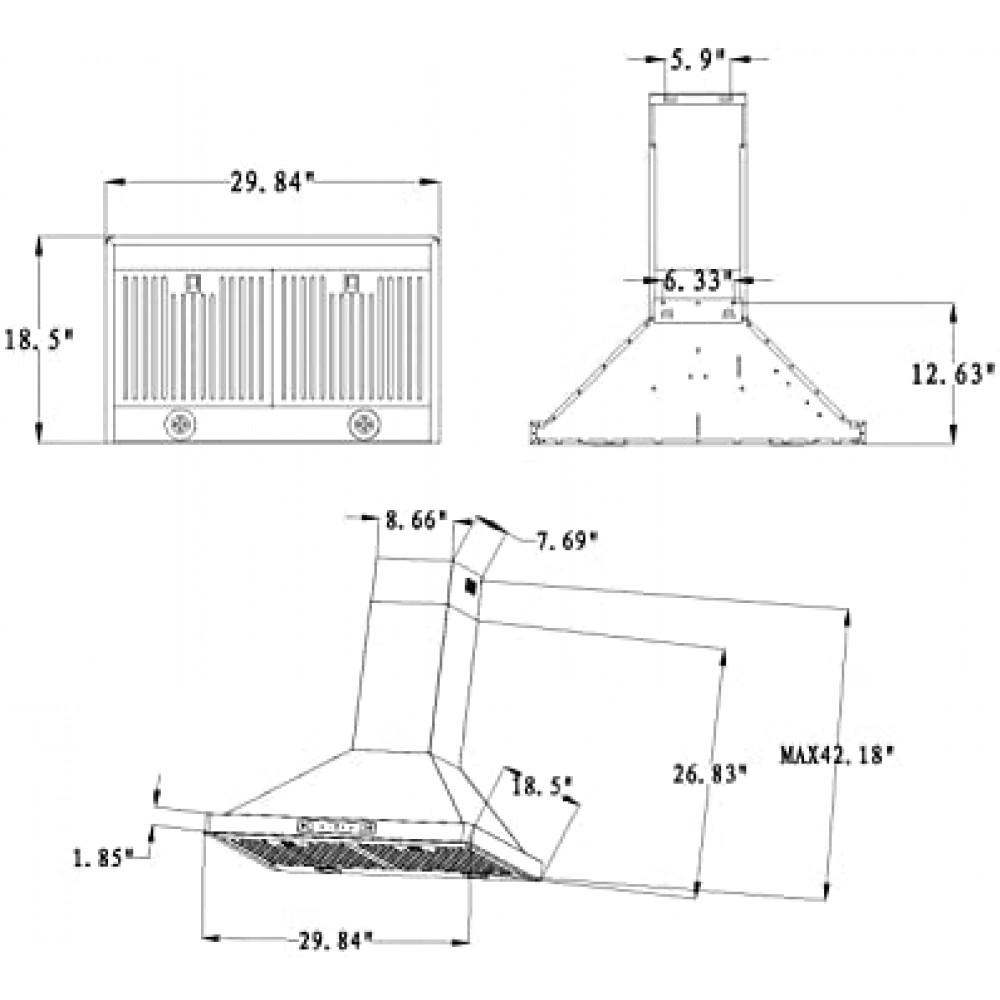 Motor de CC potente pero silencioso: esta campana extractora de 30 pulgadas está equipada con un motor sin escobillas de CC de 90 W que proporciona una potente succión de aire de 800 CFM, pero el nivel de ruido es inferior a 61 dB a la velocidad más alta. Disfrutará cocinando con esta campana extractora que elimina los olores de manera eficiente y sin mucho ruido.