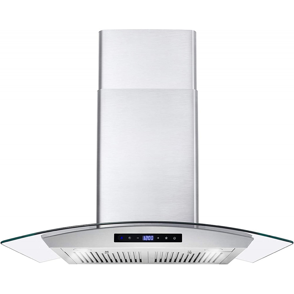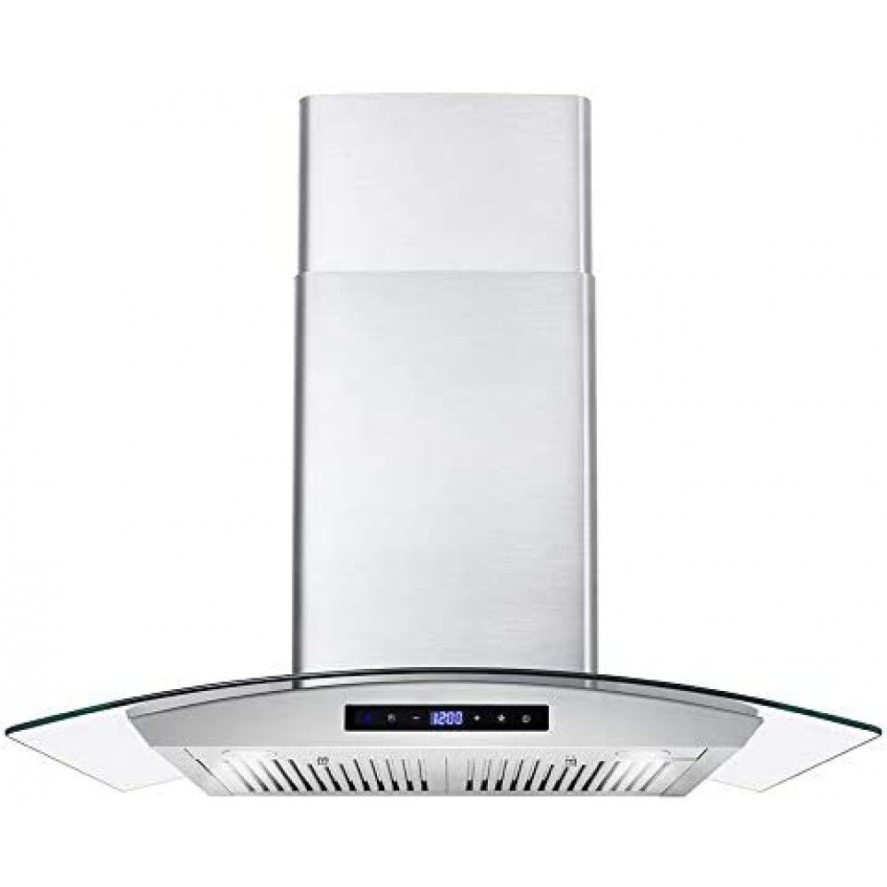 FLUJO DE AIRE EFICIENTE: con un tamaño de 30 pulgadas, 380 CFM y controles digitales táctiles, la campana extractora de montaje en pared de Cosmo ventila rápidamente su cocina sin el ruido de las campanas extractoras de la competencia. Range Hood viene estándar con conductos; Kit de filtro de carbón disponible para ductos o sin ductos Compre la pieza n.° CFK1-TM (se vende por separado)