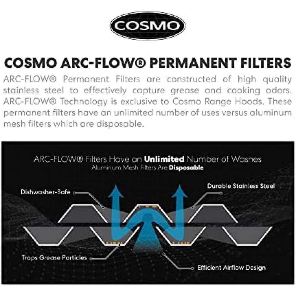FILTROS FÁCILES DE LIMPIAR: Los filtros permanentes Cosmo ARC-FLOW son aptos para lavavajillas y extremadamente duraderos. No es necesario reemplazar estos filtros, simplemente colóquelos en el lavavajillas para facilitar el mantenimiento y ahorrar costos.